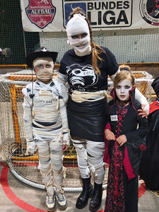 Zum 20-jährigen Jubiläum der Halloween-Party fanden sich wieder einmal zahlreiche große und kleine Geister in der grünen Hölle des Rollhockeystadions ein, um einen schaurig-schönen Nachmittag bei Spiel und Spaß zu verbringen. Zu Beginn der Veranstaltung präsentierte die Rollkunstlauf-Abteilung exklusiv als Premiere ihr neues Programm, das sie traditionell bei »Halloween rollt« aufführen (siehe Artikel der Abteilung Rollkunstlauf). Im Anschluss wurde die Rollfläche für alle Besucherinnen und Besucher freigegeben und die Kinder konnten sich an verschiedenen Stationen betätigen und dafür Süßes oder Saures erspielen. Gegen 18.00 Uhr startete der Lampionumzug auf den »Berg des Grauens« – den »Monte Böhlitz«. Zurück im Stadion wartete schon die Bonbonschmeißliese, um die Kinder zu »Feuer, Wasser, Sturm und Blitz« über die Rollfläche zu jagen. Wer hier nicht Bonbons abfassen konnte, war entweder nicht im Stadion oder viel zu langsam. Es dürfte aber für alle gereicht haben.