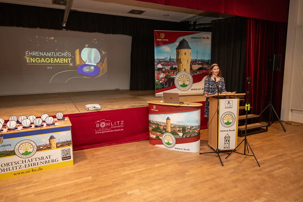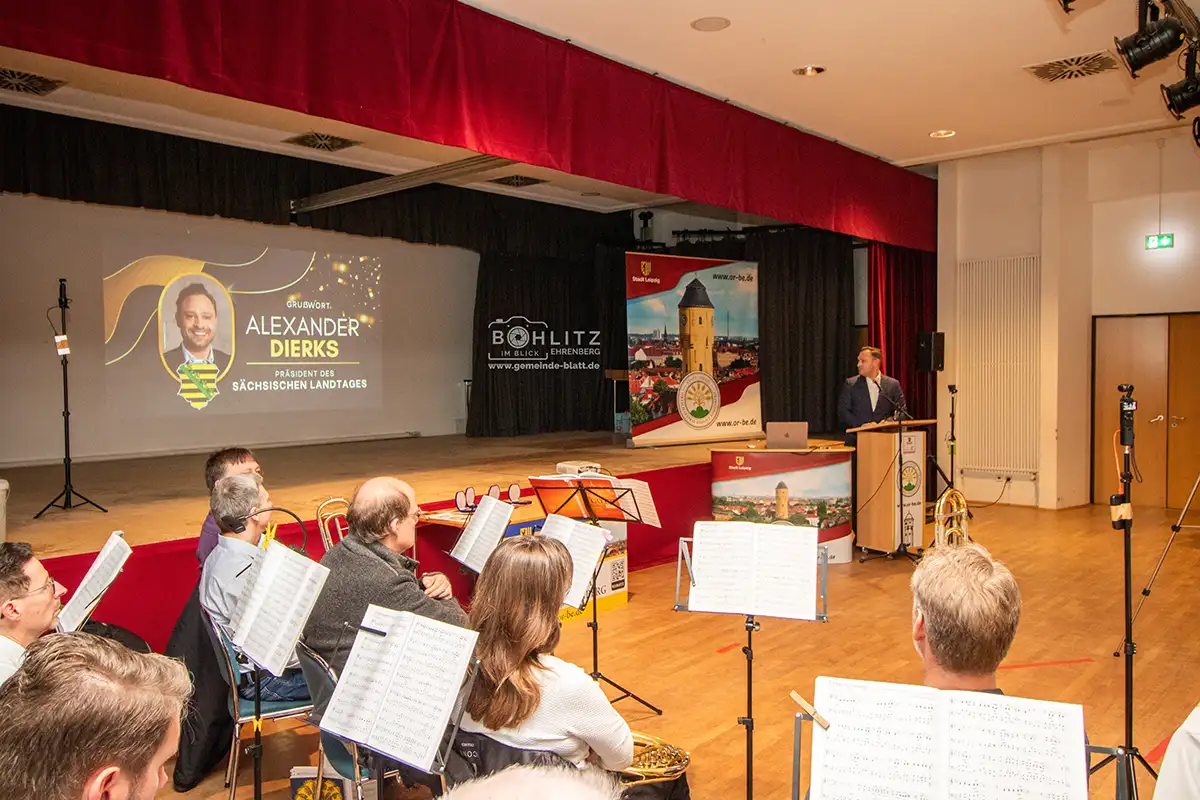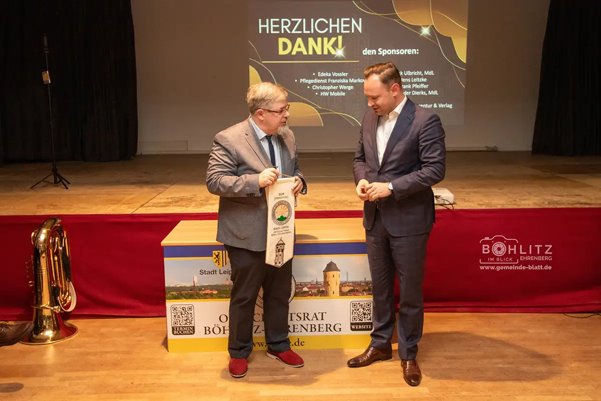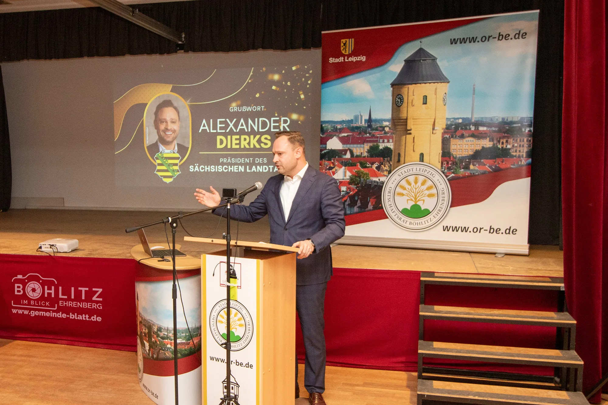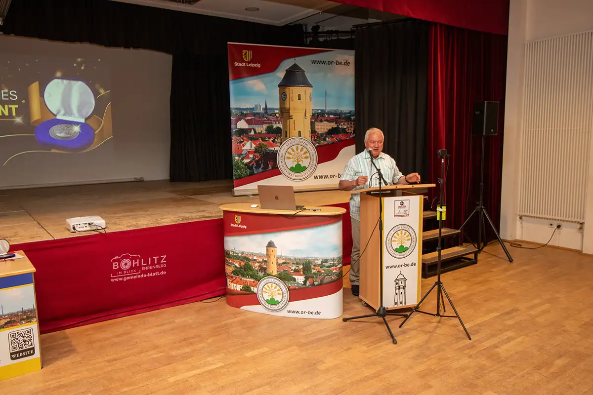 Auch Ortsvorsteher Denis Achtner würdigte in seinen einführenden Worten das Engagement der Böhlitz-Ehrenbergerinnen und Böhlitz-Ehrenberger und kritisierte die Stadtverwaltung Leipzig scharf bezüglich des aktuellen Vorgehens in Bezug auf die Brauchtumsmittel, die sich Böhlitz-Ehrenberg einst vertraglich hat zusichern lassen, die Stadt diese aber unter Haushaltvorbehalt stelle. Dies sei nicht nur rechtswidrig, sondern stelle einen Tiefpunkt des Miteinanders seit der Eingemeindung nach Leipzig dar. „Diese vertraglichen Zusagen werden somit aus der Sichtweise des Ortschaftsrates zu einer Pflichtaufgabe der Stadt, für die eben keine Haushaltvorbehalt gilt.“ Achtner spielte hier auf das vergangene Jahr an, in dem die Stadt die Brauchtumsmittel mit dem Hinweis auf den unbestätigten Haushalt der Stadt Leipzig bis weit über die Jahresmitte zurückhielt beziehungsweise nur teilweise auszahlte. „Warum greift mich das so an? Weil man damit genau diejenigen trifft, die eben diese wichtige Säule unserer Gesellschaft ausmachen, die vielen Ehrenamtler und Engagierten, und damit uns alle, die wir heute hier versammelt sind."